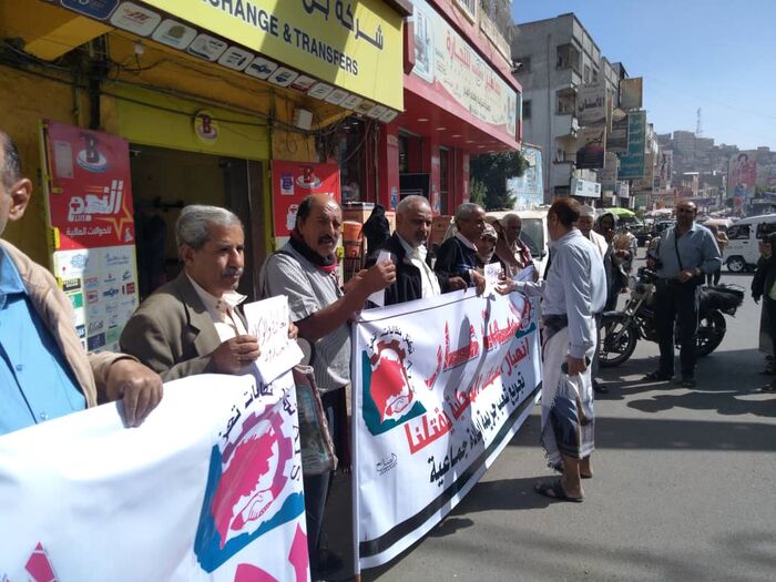 نفذ العشرات من النقابيين والناشطين، السبت، في مدينة تعز، وقفة احتجاجية دعا لها تكتل نقابات تعز، رفضاً للوضع العام المتدهور، والمطالبة بإجراء إصلاحات اقتصادية عاجلة.
