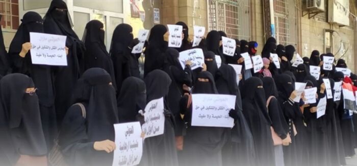 وأكدت المشاركات في الوقفة التي نفذت أمام مبني المحافظة، استمرار مليشيات الحوثي بارتكاب أبشع الجرائم ضد المدنيين، من قتل وتشريد وتفجير للمنازل في قرى الحيمة، في ظل صمت أممي مطبق.