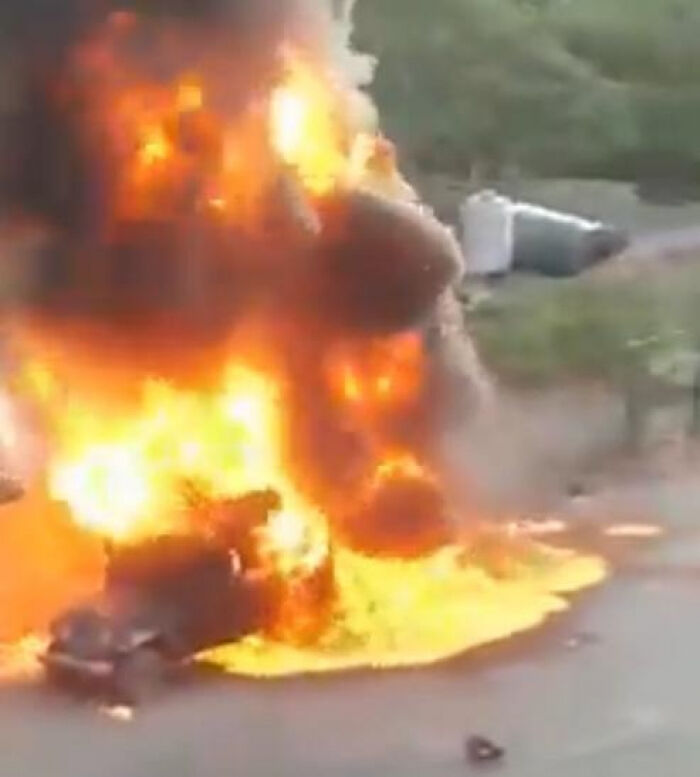 وقالت مصادر إن الحريق اندلع في إحدى السيارات المُحملة بكمية كبيرة من مادة البنزين.