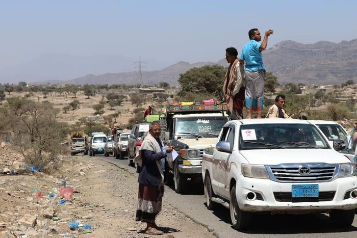 سير أبناء مديرية الشمايتين بريف محافظة تعز الجنوبي، اليوم الخميس، قافلة التحرير الثالثة، دعما للجيش الوطني في جبهات الاحكوم جنوبي تعز.