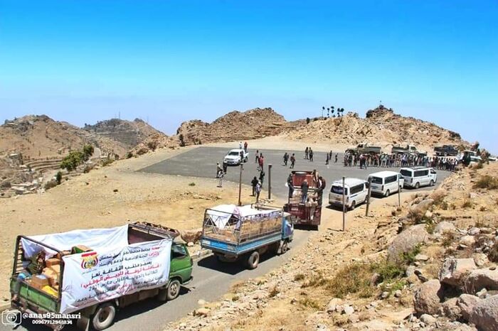 سير مكتب الثقافة بمحافظة تعز، جنوب غرب البلاد، امس الخميس، قافلة غذائية ودوائية، دعماً لقوات الجيش الوطني في جبهة الشقب التابعة لمديرية صبر الموادم، جنوب شرق المحافظة.