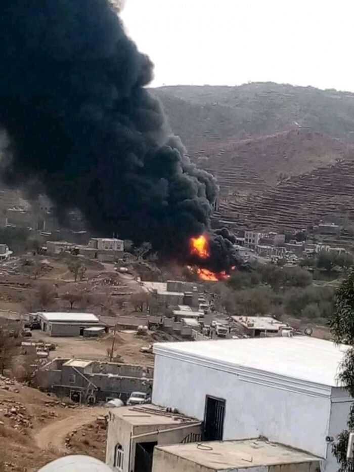 اندلع عصر اليوم الثلاثاء، حريق هائل في منطقة العين، بمديرية المواسط، جنوب محافظة تعز، جنوب غرب البلاد.