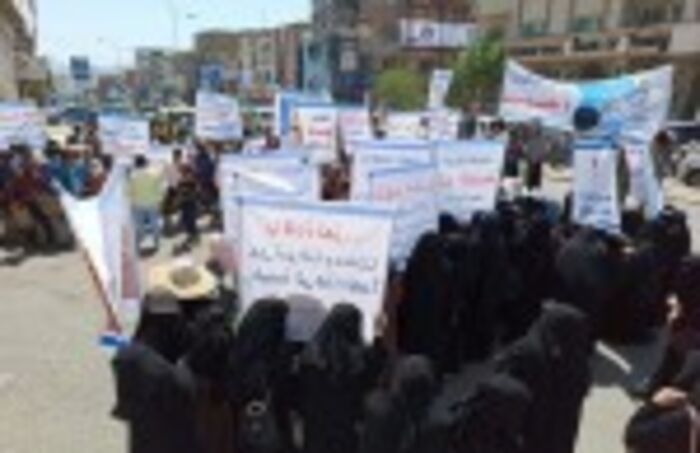وقفة احتجاجية تطالب بالقبض على قتلة مواطن في تعز وتسليم منازله المنهوبة