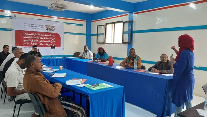 وهدفت الورشة، بمشاركة 15 من عقال الحارات التي تقع في مناطق التماس، إلى تفعيل دور عقال الحارات في حماية وتعزيز حقوق الإنسان والتبليغ عن الانتهاكات التي تطال الضحايا وتمس حقوقهم المنصوص عليها في المواثيق الدولية والقوانين الوطنية خصوصا الانتهاكات المتعلقة بالقانون الدولي الإنساني والتي حدثت وتحدث أثناء النزاع المسلح الحالي في اليمن ومنها مناطق التماس المعروفة بكلفة الوصول الى ضحاياها ومناطقها والحاجة لتنوع قنوات جمع المعلومة.