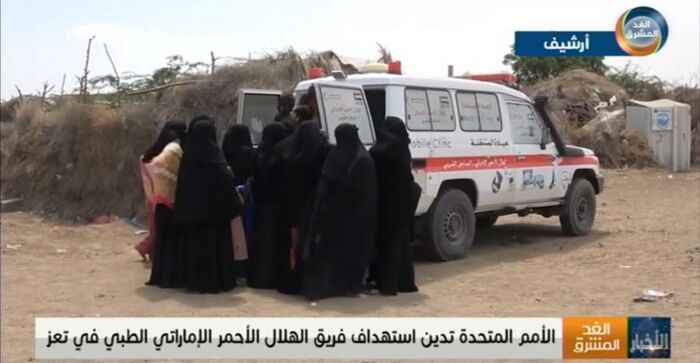 وقالت في بيان صادر عنها ان مسلحين مجهولين قاموا بمهاجمة عيادة طبية متنقلة يديرها الهلال الاحمر الاماراتي في منطقة يختل بمديرية المخا بمحافظة تعز.