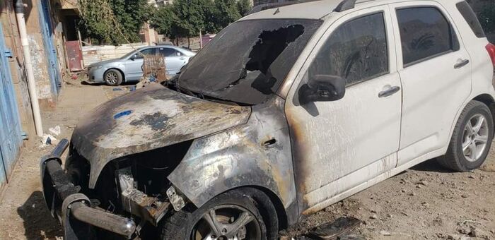 عصابة مسلحة تحرق سيارة احد كوادر السلطة القضائية بتعز