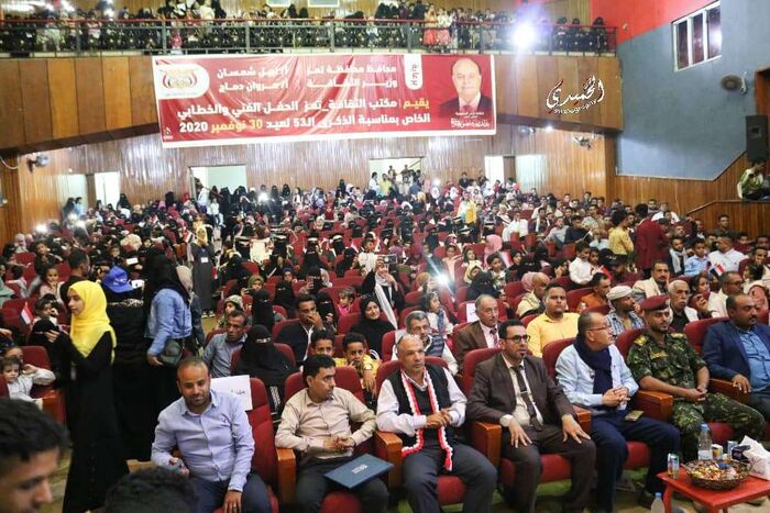 نظم مكتب الثقافة ، مساء اليوم ، فعالية احتفالية بمناسبة العيد الـ 53 للاستقلال المجيد 30 نوفمبر ، برعاية محافظ المحافظة الأستاذ / نبيل شمسان ، والأستاذ / مروان دماج وزير الثقافة .